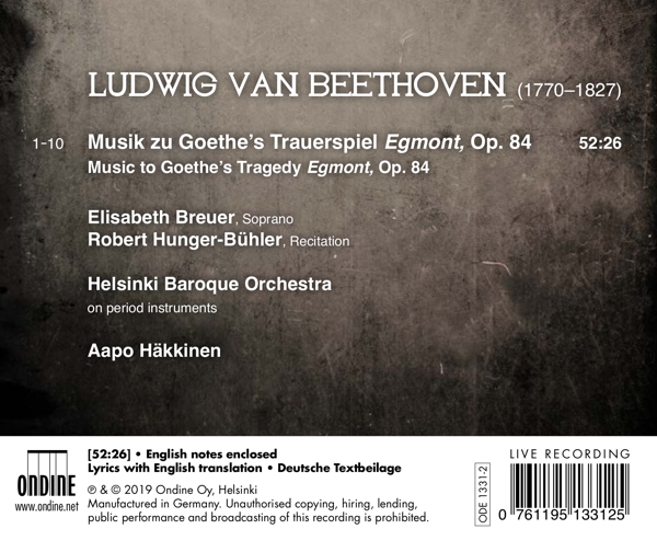 Egmont op. 84 (Ouvertüre und Musik zu Goethes Trauerspiel) 01. "Ouvertüre" 02. "Lied: Die Trommel gerühret" 03. "Zwischenakt 1" 04. "Zwischenakt 2" 05. "Lied: Freudvoll und leidvoll" 06. "Zwischenakt 3" 07. "Zwischenakt 4" 08. "Cl?rchens Tod" 09. "Melodram" 10. "Siegessymphonie"