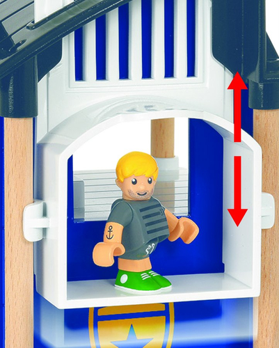 Zweistöckige Polizeistation für spannendes Räuber-und-Gendarm-Spielen. Fahre mit dem Auto, Zug oder Schiff - alles ist möglich in der BRIO World. Der Aufzug dient auch als Gitterluke. Enthält Polizeistation, Einsatzfahrzeug (komplett mit Licht- und Geräuscheffekten und einem Dach, das sich öffnen lässt), Rampen, Polizist und Dieb.