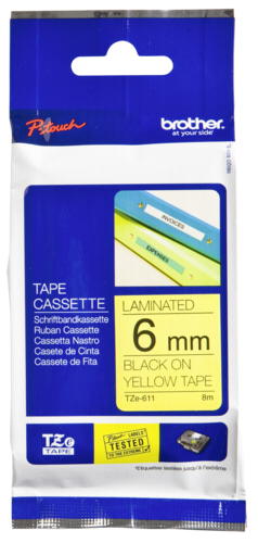 Schriftbandkassette Brother 6mm gelb/schwarz TZE611