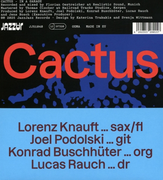 Beschreibung:Cactus ist ein junges Jazzquartett um Lorenz Knauft (Saxofon/Flöte), Joel Podolski (Gitarre), Konrad Buschhüter (Hammond-Orgel) und Lucas Rauch (Schlagzeug), das mit seinem Debütalbum eine farbenreiche Souljazz-Erfahrung liefert. Statt bloßer Retro-Zitate präsentieren sie zehn originelle Eigenkompositionen zwischen Groove, Jazz-Rock, Fusion und Funk. Der Cactus-Sound ist dabei ebenso energetisch wie detailverliebt: Buschhüters Orgel gibt dem Klangbild Struktur und Tiefe, ohne sich in den Vord...