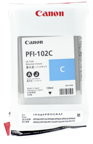 Canon PFI-102C. Typ: Original, Druckfarben: Cyan, Markenkompatibilität: Canon