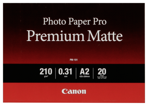 Canon Pro Premium PM-101 - Glattes mattes Fotopapier - 310 Mikron warm white tone - A2 (420 x 594 mm) - 210 g/m2 - 20 Blatt Gruppe Druckerverbrauchsmaterial Hersteller Canon Hersteller Art. Nr. 8657B017AA Modell Pro Premium PM-101 EAN/UPC Produktbeschreibung: Canon Pro Premium PM-101 - glattes mattes Fotopapier - 20 Blatt Produkttyp Glattes mattes Fotopapier Mediengröße A2 (420 x 594 mm) Drucktechnologie Tintenstrahl Mediengewicht 210 g/m2 Medienstärke 310 Mikron Medienhelligkeit 92 Medienfarbe Warm white tone Enthaltene Menge 20 Blatt