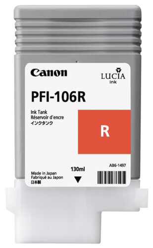 Canon PFI-106 R - Rot - Original - Tintenbehälter - für imagePROGRAF iPF6400, iPF6400SE, IPF6450 Gruppe Druckerverbrauchsmaterial Hersteller Canon Hersteller Art. Nr. 6627B001AA Modell PFI-106 R EAN/UPC 4960999909561 Produktbeschreibung: Canon PFI-106 R - Rot - Original - Tintenbehälter Produkttyp Tintenbehälter Drucktechnologie Tintenstrahl Druckfarbe Rot (pigmentiert) Kapazität 130 ml