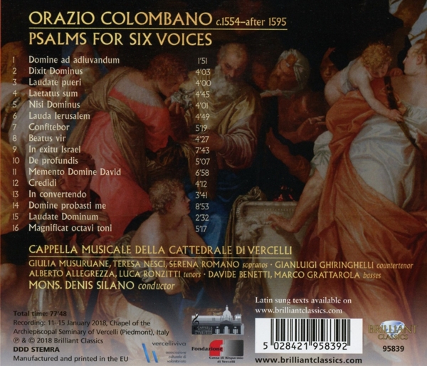 | Beschreibung: | The conventual franciscan Orazio Colombano (c.1554-after 1595) hailed from Verona and came to the ancient city of Vercelli, in Piedmont, east of Turin, in 1579 to take up his first professional appointment as Moderator for Music at the Cathedral, a thriving cappella musicale under the House of Savoy, established in 1495 with a choir of six children, adult singers including a number of Flemish and French musicians, and organists, cornetto, sackbut, theorbo and string players. Colombano spent about two years there, during which he composed the Psalms for Six Voices (Harmonia super vespertinos omnium solemnitatum psalmos sex vocibus decantanda), his first work, which sets to music the Psalms of the Vespers liturgy for all obligatory feast days, as established at the Council of Trent, preceded by the introductory 'Deus in adjutorium' and followed by the Magnificat. The style is largely antiphonal, with alternating choirs in dialogue, and this collection presents as a kind of 'compendium' of the features of polyphonic psalms of the time: from homorhythm with rather strict syllabic declamation, to close imitative polyphony akin to Flemish models. This variety of approach gives insight into the structure of psalmodic recitation and it's polyphonic treatment in the late 16th century. This world-premiere recording is based on the score edited by Denis Silano for the series 'Bibliotheca Musicalis Ecclesiae Vercellensis' published by Vox Antiqua. Monsignor Silano leads the Cappella Musicale of Vercelli Cathedral, whose elite ensemble aims to revive the Vercelli Cathedral's 16th- and 17th-century heritage of manuscripts and printed music. These soloists, specialised in early music, perform in the Vercelli Cathedral's liturgical services., Runningtime: 00:00:00, Labelcode BRLT95839.2 |