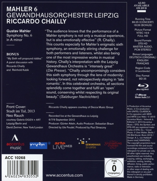 01. (keine Angaben) "Vorspann" Sinfonie Nr. 6 a-moll "Tragische" 02. Chailly, Riccardo "1. Allegro energico, ma non troppo - Heftig, aber markig" 03. Chailly, Riccardo "2. Andante moderato" 04. Chailly, Riccardo "3. Scherzo: Wuchtig - (Trio) Altv?terisch: Grazioso" 05. Chailly, Riccardo "4. Finale: Sostenuto - Allegro moderato - Allegro energico" 06. (keine Angaben) "Abspann" 07. Chailly, Riccardo "My sixth will porpound riddles (Film)"