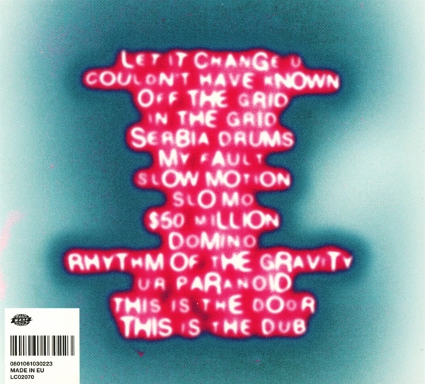 01. "Let it change U" 02. "Couldn't have known" 03. "Off the grid" 04. "In the grid" 05. "Serbia drums" 06. "My fault" 07. "Slow motion" 08. "Slomo" 09. "$50 million" 10. "Domino" 11. "Rhythm of the gravity" 12. "Ur paranoid" 13. "This is the door" 14. "This is the dub"