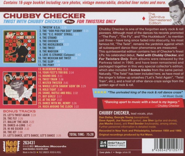 | Beschreibung: | Bass: Joe Macho, Guitar: Dave Appell, Guitar: Joe Renzetti, Guitar, Drums: Joe Sher, Keyboards: Fred Bender, Lead Vocals: Chubby Checker, Saxophone: Dan Dailey, Saxophone: George Young (2), Labelcode 012263431 (263431) |
