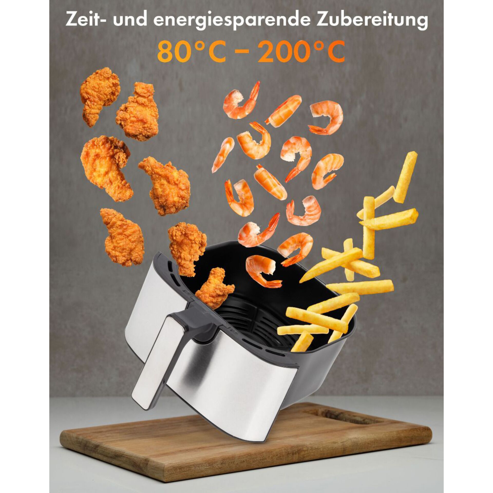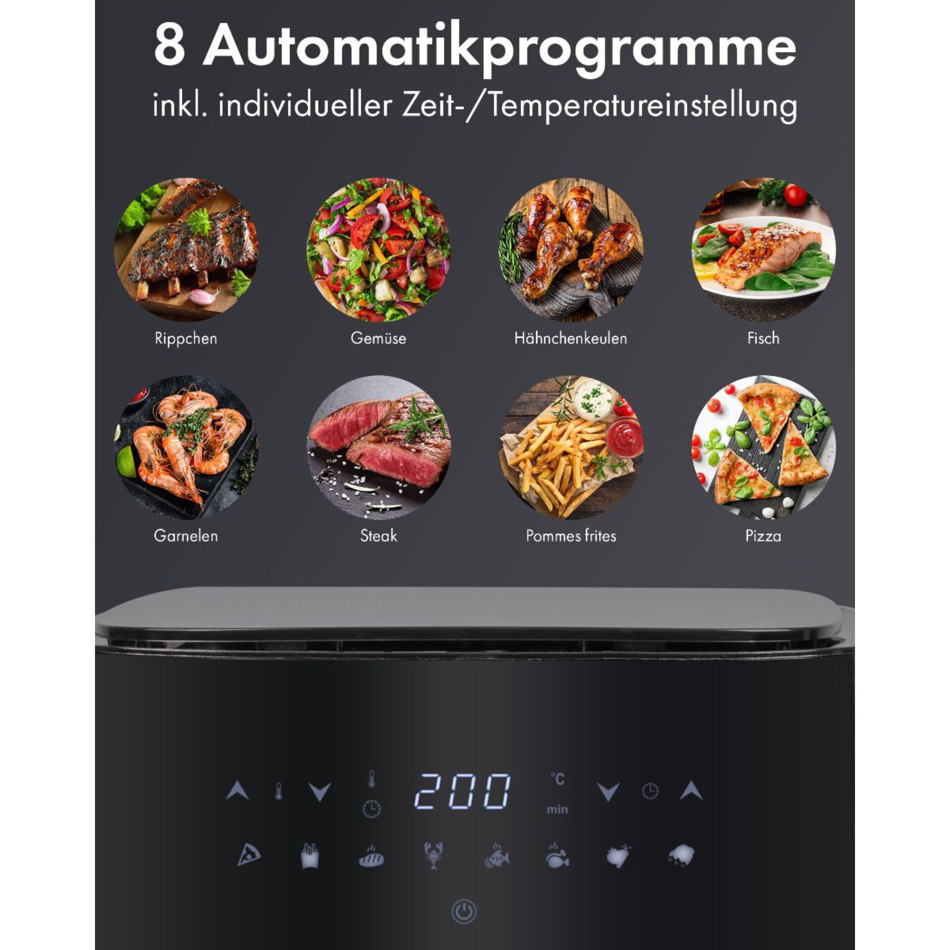 schwarz/edelstahl, 1.450 Watt, Korb 5 Liter