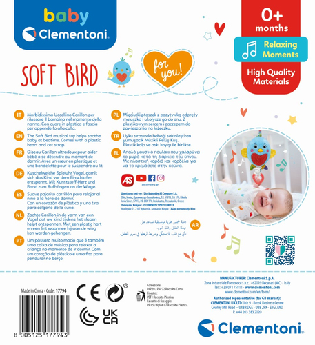 Clementoni: Baby For You Prima Infanzia Soft Bird Musical Pl