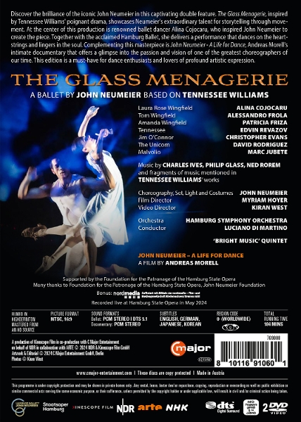 The Glass Menagerie ? Ein Ballett von John Neumeier (DVD) vom Hersteller C Major ist eine faszinierende Neuinterpretation des berühmten Theaterstücks von Tennessee Williams durch die Sprache des Tanzes. Die Choreografie und Regie übernahm der vielfach ausgezeichnete John Neumeier ? ein Pionier des modernen Balletts mit Werken wie ?Nijinsky? oder ?Die Kameliendame?. Seit über fünf Jahrzehnten prägt er das internationale Tanzgeschehen und wurde u.a. mit dem Prix Benois de la Danse geehrt. Das Ensemble besteht aus Stars des Hamburg Ballett: Silvia Azzoni überzeugt durch lyrische Ausdruckskraft, Alexandre Riabko begeistert mit dramatischer Tiefe, Ida Praetorius wurde zur Tänzerin des Jahres 2021 gekürt und Karen Azatyan beeindruckt durch seine Bühnenpräsenz. Auf dieser DVD erleben Sie ihre nuancierten Darbietungen sowie ein stimmungsvolles Bühnenbild und sorgfältig ausgewählte Musik unter der Leitung von Neumeier selbst. Der Hersteller C Major steht für höchste Qualität im Bereich klassischer Musik-DVDs und genießt weltweit einen exzellenten Ruf dank preisgekrönter Produktionen mit renommierten Künstlern und Orchestern.