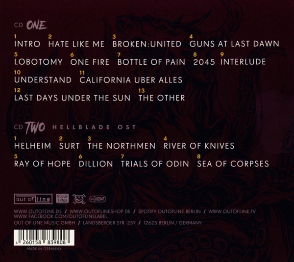 Disc 01 01. "Intro" 02. "Hate like me" 03. "Broken:united" 04. "Guns at last dawn" 05. "Lobotomy" 06. "One fire" 07. "Bottle of pain" 08. "2045" 09. "Interlude" 10. "Understand" 11. "California uber alles" 12. "Last days under the sun" 13. "The other"