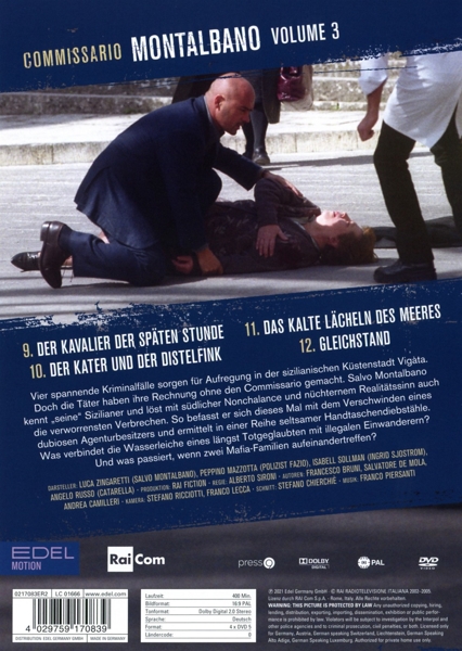 Commissario Montalbano-Vol.3 auf DVD vom Hersteller Edel:Records entführt Sie erneut ins spannende Sizilien und die Welt des berühmten Ermittlers aus der Feder von Andrea Camilleri. In dieser Ausgabe löst Kommissar Salvo Montalbano weitere raffinierte Kriminalfälle vor malerischer Kulisse und mit viel italienischem Flair ? eine gelungene Mischung aus Spannung und authentischen Charakteren.
