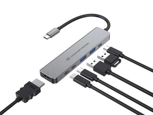 CONCEPTRONIC 6-1 Dock USB-C->HDMI,2xUSB-A,3xUSB-C,+ 25cm gr