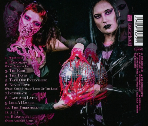 1.1 Atrophy1.2 Raindrops (Featuring Massive Ego)1.3 The Echo1.4 The Taste1.5 Take Off Everything1.6 Neverlove (Featuring Chris Harms / Lord of the Lost)1.7 Incinerate1.8 Lace and Latex1.9 Like a Dagger1.10 The Threshold1.11 3.2.11.12 Raindrops (Nero Argento Remix) |