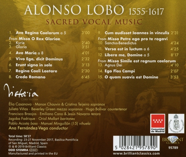 | Beschreibung: | Baritone Vocals: Jagoba Fadrique, Baritone Vocals: Oriol Mallart, Bass Vocals: Pablo Acosta, Composed By: Alonso Lobo, Conductor: Ana Fernández-Vega, Countertenor Vocals: Hugo Bolivar, Mezzo-soprano Vocals: Beverley Green, Mezzo-soprano Vocals: Julieta Viñas, Soprano Vocals: Cristina Teijeiro, Soprano Vocals: Manon Chauvin, Soprano Vocals: Èlia Casanova Martí, Tenor Vocals: Emiliano Cano, Tenor Vocals: Francisco Braojos, Tenor Vocals: Jesús Navarro Rodrigo, Vihuela: Manuel Minguillon Nieto, Labelcode BRLT95789.2 (95789) |