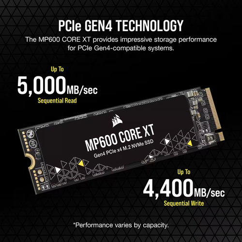 Die Corsair MP600 CORE XT 4 TB SSD ist ein leistungsstarkes Solid-State-Laufwerk für anspruchsvolle Gamer, Content Creator und professionelle Anwender mit hohem Speicherbedarf. Dank der PCIe Gen4 x4 NVMe-Technologie erreicht dieses Laufwerk beeindruckende sequentielle Lesegeschwindigkeiten von bis zu 5.000 MB/s und Schreibgeschwindigkeiten von bis zu 4.400 MB/s ? ideal für schnelle Datenübertragungen und kurze Ladezeiten bei großen Dateien wie Spielen oder Videoprojekten. Mit einer Kapazität von großzügigen 4 TB bietet die SSD ausreichend Platz für umfangreiche Datenmengen ohne Kompromisse bei der Geschwindigkeit oder Zuverlässigkeit dank moderner QLC-NAND-Speichertechnologie im kompakten M.2-Format ? passend für aktuelle PCs und Notebooks gleichermaßen geeignet ist sie vielseitig einsetzbar in Gaming-Systemen sowie Arbeitsrechnern mit hohen Leistungsanforderungen an den Massenspeicherbereich! Der Hersteller Corsair steht seit Jahren weltweit für innovative Qualitätsprodukte aus dem Bereich Computerhardware; dabei legt das Unternehmen zunehmend Wert auf Nachhaltigkeit durch umweltfreundliche Produktionsprozesse sowie recyclebare Verpackungsmaterialien ? so leisten Sie als Kunde beim Kauf eines solchen Produkts auch einen Beitrag zum Umweltschutz!