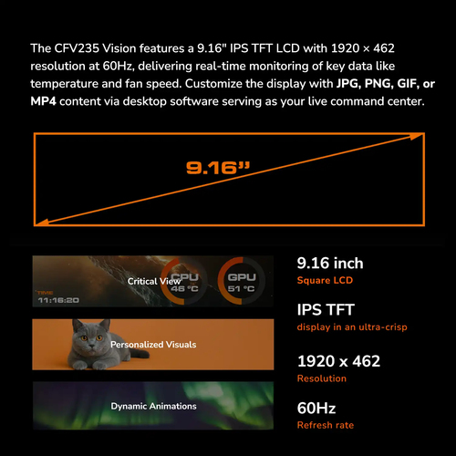 COUGAR Gehäuse Midi-Tower, CFV235 Vision, ARGB, LCD-Display, Glas, Schwarz