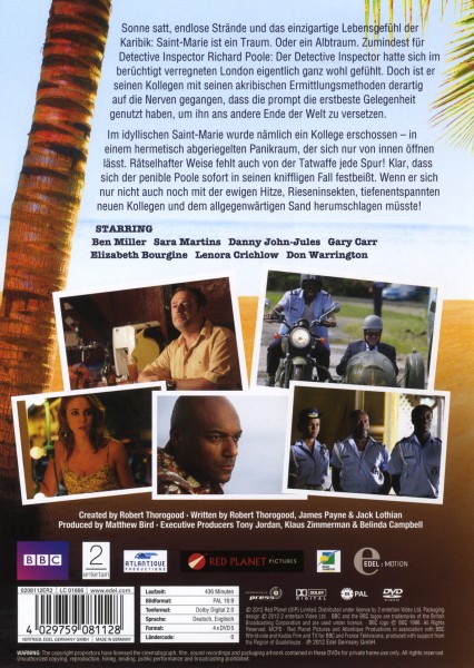 Beschreibung:Sonne satt, endlose Strände und das einzigartige Lebensgefühl der Karibik: Saint-Marie ist ein Traum. Oder ein Albtraum. Zumindest für Detective Inspector Richard Poole: Der Detective Inspector hatte sich im berüchtigt verregneten London eigentlich ganz wohl gefühlt. Doch ist er seinen Kollegen mit seinen akribischen Ermittlungsmethoden derartig auf die Nerven gegangen, dass die prompt die erstbeste Gelegenheit genutzt haben, um ihn ans andere Ende der Welt zu versetzen. Im idyllischen Saint-Marie wurde nämlich ein Kollege erschossen - in einem hermetisch abgeriegelten Panikraum, der sich nur von innen öffnen lässt. Rätselhafter Weise fehlt auch von der Tatwaffe jede Spur! Klar, dass sich der penible Poole sofort in seinen kniffligen Fall festbeißt. Wenn er sich nur nicht auch noch mit der ewigen Hitze, Rieseninsekten, tiefenentspannten neuen Kollegen und dem allgegenwärtigen Sand herumschlagen müsste!