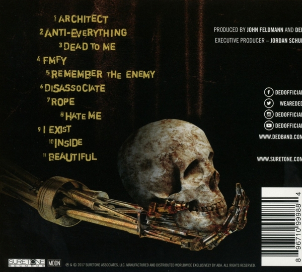 01. "Architect" 02. "Anti-everything" 03. "Dead to me" 04. "FMFY" 05. "Remember the enemy" 06. "Disassociate" 07. "Rope" 08. "Hate me" 09. "I exist" 10. "Inside" 11. "Beautiful"