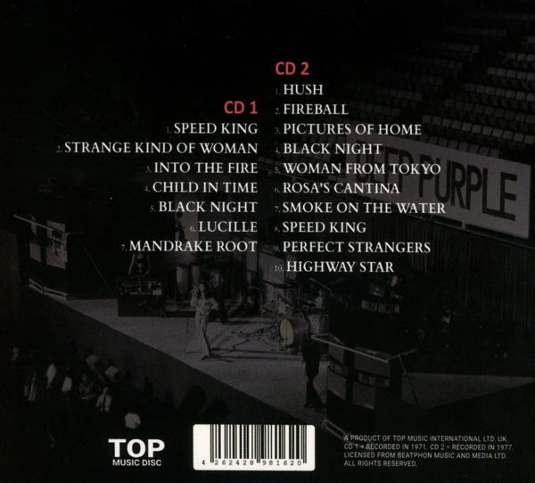 1-1: Speed King () 1-2: Strange Kind Of Woman () 1-3: Into The Fire () 1-4: Child In Time () 1-5: Black Night () 1-6: Lucille () 1-7: Wring That Neck () 2-1: Hush () 2-2: Fireball () 2-3: Pictures Of Home () 2-4: Black Night () 2-5: Woman From Tokyo () 2-6: Rosa's Cantina () 2-7: Smoke On The Water () 2-8: Speed King () 2-9: Perfect Strangers () 2-10: Highway Star () |