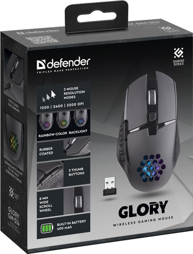 Hauptmerkmale Maus Zweck Gaming Geräteschnittstelle RF Wireless Bewegungerfassungs Technologie Optisch Scroll Typ Rad Knopfanzahl 7 Tastentyp Gedrückte Tasten Bewegung Auflösung 3200 DPI Maus-Tracking-Geschwindigkeit 40 ips Anpassbare Bewegungsauflösung Ja Anzahl der Bewegungsauflösungsmodi 3 Unterstützung mehrerer Geräte Ja Programmierbare Mausknöpfe Ja Anzahl der programmierbaren Tasten 5 Anzahl der Scroll-Rollen 1 Scroll-Richtungen Senkrecht Beschleunigung (Max.) 10 G Frequenzband 2.4 GHz Tastenhaltbarkeit (Millionen Klicks) 5 Design Formfaktor rechts Produktfarbe Schwarz Intelligentes, ergonomisches Design Ja Oberflächenfärbung Monochromatisch Gummigriffe Ja Daumenauflage Ja Beleuchtung Ja Farben der Beleuchtung Multi Ergonomie Kabellänge 0,5 m Einfahrbares Kabel Ja Leistung Energiequelle Batterien Wiederaufladbar Ja Akku-/Batterietyp Integrierte Batterie Akku-/Batteriekapazität 400 mAh Akku-/Batteriebetriebsdauer 240 h Systemanforderung Unterstützt Windows-Betriebssysteme Windows 10,