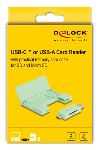DELOCK Card Reader USB 5Gbps USB Typ-C/Typ-A SD und Micro SD