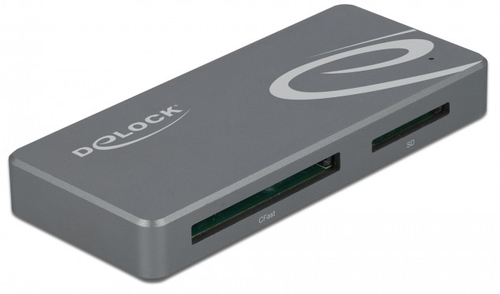 DeLOCK USB Type-C Card Reader für CFast und SD Speicherkarten + USB Hub mit Typ-A und USB Type-C Port