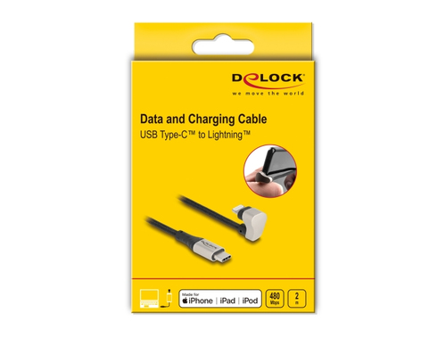 DeLOCK Daten- und Ladekabel USB Type-C™ zu Lightning™ für iPhone™ und iPad™ 180° gewinkelt 2 m MFi