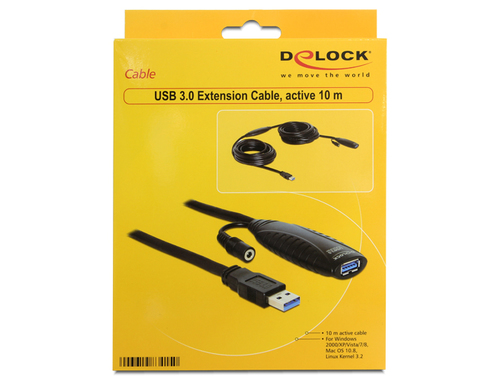 Dieses USB 3.0 Kabel von Delock können Sie an einen aktiven USB Port anschließen und dient zur Verlängerung der USB Schnittstelle um 10 m. Durch Anstecken einer weiteren 10 m Verlängerung lässt sich das Kabel um bis zu 20 m erweitern.