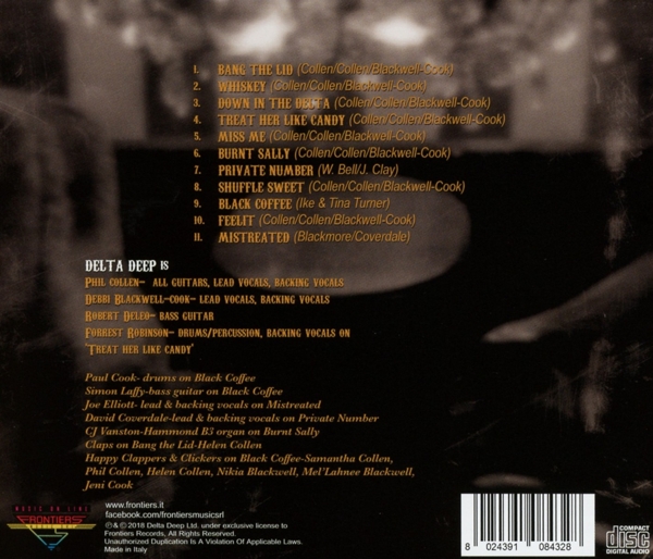 Beschreibung:Backing Vocals: Forrest Robinson, Band [Delta Deep Is], Bass Guitar: Robert DeLeo, Band [Delta Deep Is], Drums, Percussion: Forrest Robinson, Band [Delta Deep Is], Guitar [All], Lead Vocals, Backing Vocals: Phil Collen, Band [Delta Deep Is], Lead Vocals, Backing Vocals: Debby Blackwell, Bass Guitar: Simon Laffy, Drums: Paul Cook, Engineer [Engineered By]: Russ Fowler, Lead Vocals, Backing Vocals: David Coverdale, Lead Vocals, Backing Vocals: Joe Elliott, Mastered By: Ronan McHugh, Mixed By: Ronan McHugh, Organ [Hammond B3]: Jeffery CJ Vanston, Producer [Produced By]: Phil Collen, Labelcode FTTR843.2 (FR CD 843), Phonographic Copyright (p) Delta Deep Ltd., Copyright (c) Delta Deep Ltd., Licensed To Frontiers Records