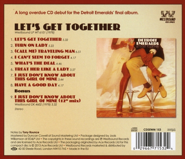| Beschreibung: | Arranged By: Mike Theodore, Design Concept: Jools Williamson, Engineer: Bruce Nazarian, Engineer: Dennis Coffey, Engineer: Gregory McIntosh, Engineer: Michael Toles, Engineer [Mix]: Arthur Stoppe, Liner Notes: Tony Rounce, Mastered By: José Rodriguez, Mixed By: Tom Moulton, Remastered By: Duncan Cowell, Labelcode IMT2353196.2 (CDSEWM 153), Mixed At Sigma Sound Studios, Mastered At Frankford/Wayne Mastering Labs, Phonographic Copyright (p) Westbound Records, Licensed To Ace Records Ltd., Marketed By Ace Records Ltd., Distributed By Ace Records Ltd. |