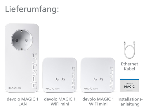 Mit dem devolo Magic 1 WiFi Multikit mini genießen Sie zuverlässige Konnektivität überall zuhause ? nachhaltig und zukunftsorientiert! |  | | Herstellernummer: |