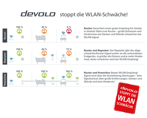 Als führender deutscher Hersteller steht devolo seit seiner Gründung im Jahr 2002 für Qualität und Innovation bei Netzwerklösungen sowie nachhaltiges Handeln: Energieeffiziente Komponenten sorgen für einen geringen Stromverbrauch; Verpackungsmaterialien sind weitgehend recycelbar; verantwortungsvolle Lieferketten werden unterstützt. Mit dem Kauf dieses Produkts leisten Sie aktiv einen Beitrag zum Umweltschutz durch langlebige Hardware und weniger Elektroschrott!
