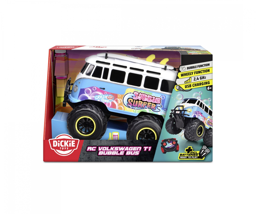 Beschreibung:Dickie Toys - RC Volkswagen T1 Bubble Bus (30 cm) - ferngesteuertes Auto ab 6 Jahre mit Seifenblasen - Remote Control Car für Kinder, 6 km/h, 2,4 GHz Fernbedienung, inkl. Batterien & Akku ? Bubble-Power - Mit diesem RC Bus kommt die gute Laune auf 4 Rädern angebraust: Der kunterbunte Volkswagen T1 Bulli versprüht nicht nur positive Sommer-Vibes, sondern sogar richtige Seifenblasen!
