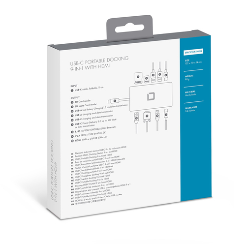 | Beschreibung: | weißGeeignet für: Mac, PC, MacBook, Notebook, Tablet, SmartphoneAnschlüsse: 1x RJ-45, 1x HDMI-Ausgang, 2x USB-A 3.2 (5 Gbit/s), 2x USB-C 3.2 (5 Gbit/s), 1x VGA-AusgangStromversorgung: Netz- und USB-BetriebTyp: DockingstationKurzinfo: DICOTA USB-C Portable Docking 9-in-1 with HDMI - Docking Station - USB-C - VGA, HDMI Gruppe Anschlusserweiterung Hersteller Dicota Hersteller Art. Nr. D31729 EAN/UPC 7640158669136 Produktbeschreibung: DICOTA USB-C Portable Docking 9-in-1 with HDMI - Docking Station - VGA, HDMI Produkttyp Docking Station Docking-Schnittstelle USB-C Videoschnittstellen VGA, HDMI Abmessungen (Breite x Tiefe x Höhe) 12.2 cm x 6.994 cm x 1.4 cm Gewicht 57 g Farbe Weiß Ausführliche Details Allgemein Produkttyp Docking Station Breite 12.2 cm Tiefe 6.994 cm Höhe 1.4 cm Gewicht 57 g Farbe Weiß Erweiterung/Konnektivität Erweiterungssteckplätze 1 (gesamt)/ 1 (frei) x SD-Speicherkarte 1 (gesamt)/ 1 (frei) x microSD Schnittstellen 1 x USB-C mit Leistungsabgabe - 24-poliger USB-C 1 x USB-C - 24-poliger USB-C 1 x SuperSpeed USB 3.0 with Battery Charging 1.2 - 9-poliger USB Typ A 1 x Netzwerk - 10Base-T/100Base-TX - RJ-45 1 x SuperSpeed USB 3.0 - 9-poliger USB Typ A 1 x Audio / Video - HDMI - 19-poliger HDMI |  | | Herstellernummer: |