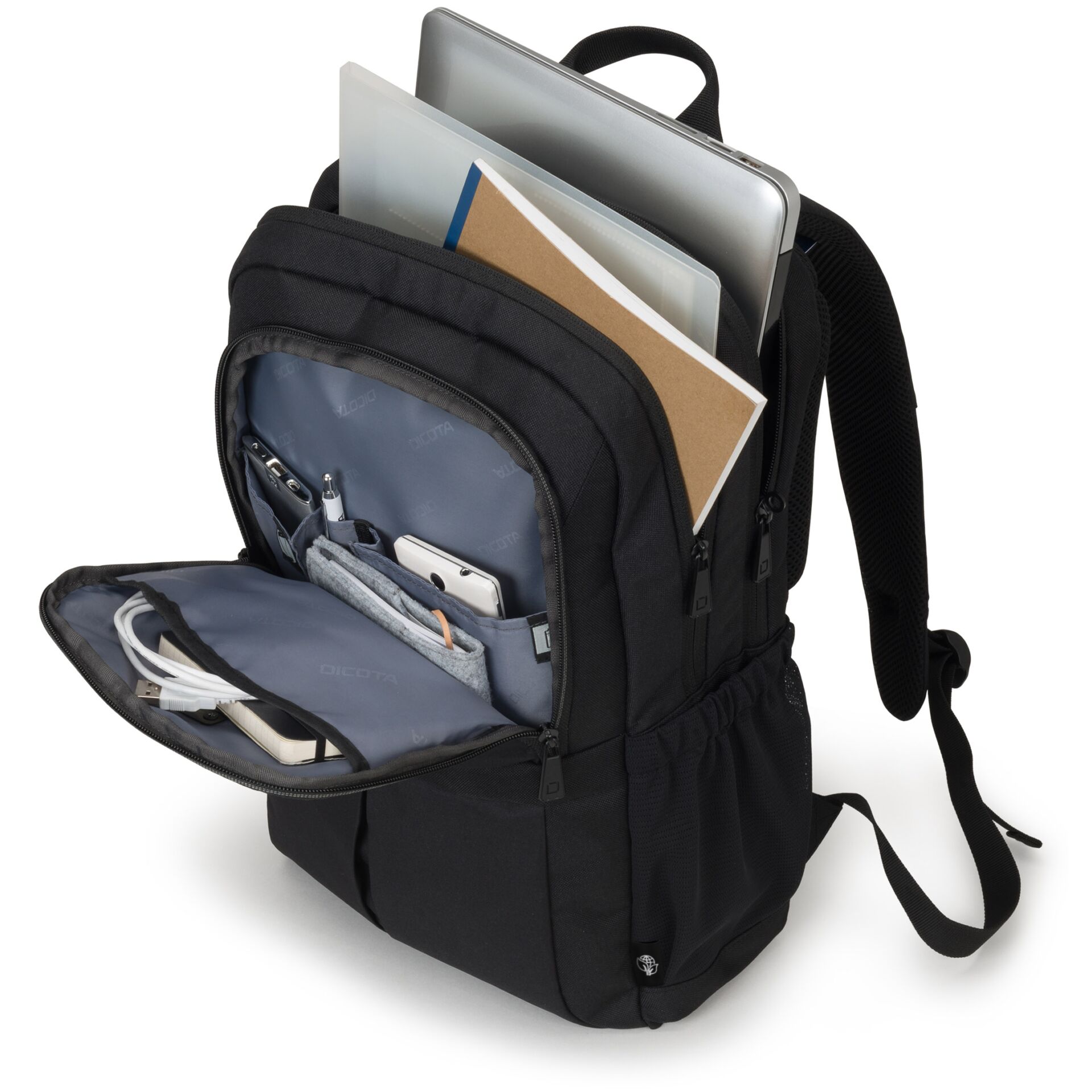 Der Artikel "Backpack SCALE, Rucksack" von Dicota aus der Kategorie Laptop Taschen hat die Farbe Schwarz, wiegt 690 g, hat die Abmasse von Höhe 445 mm x Breite 295 mm x Tiefe 170 mm und ist aus Polyethylenterephthalat.