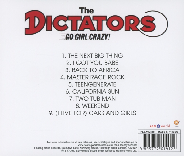 Beschreibung:Bass, Lead Vocals, Songwriter [Tunes]: Andy Shernoff, Engineer [Mixing]: Ed Sprigg, Engineer [Recording]: Tim Geelan, Graphics [Graphwics]: Gerard Huerta, Graphics [Graphwics]: Johnny Montana, Guitar [Pacemaker]: Top Ten (3), Lead Guitar, Vocals: Ross The Boss, Mastered By: Greg Calbi, Other [Barber]: Johnny Deluxe, Other [Bartender]: Joey The Bartender, Other [From Poughkeepsie]: Karen From Poughkeepsie, Other [Head Slaves]: "El" And "La" Schenck, Other [Inspiration]: Borneo Jimmy, Other [Roadie]: Eric The Roadie, Percussion: Stu Boy King, Performer: Corky Stasiak, Photography By: Roni Hoffman, Photography By [Front Cover]: David Gahr, Producer: Murray Krugman, Producer: Sandy Pearlman, Recorded By: Lou Waxman, Tape [Mayhem]: Howie Lindeman, Vocals [Secret Weapon]: Handsome Dick Manitoba, Written-By: Andy Shernoff, Written-By: Sonny Bono, Written-By: Andy Shernoff, Written-By: Andy Shernoff, Keyboards: Alan Glover, Written-By: Andy Shernoff, Written-By: Henry Glover, Written-By: Morris Levy, Written-By: Andy Shernoff, Written-By: Andy Shernoff, Keyboards: Alan Glover, Written-By: Andy Shernoff, Labelcode FLTG7261912.2 (FLOATM6191), Recorded At CBS Studios, New York, Mixed At Record Plant, N.Y.C., Mixed At Kiel Auditorium, Mastered At Master Cutting Room