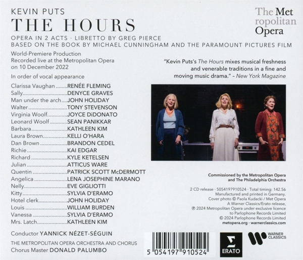 Disc 01 The Hours (Oper) 01. "Prolog - Flowers... Flowers (1. Akt)" The Hours, Act 1: "Platters! - What#s That, Babe?" (Clarissa, Sally, Chorus) [Live] 02. "Platters! - What's that, babe?" The Hours, Act 1: "She Pauses at Its Threshold#" (Chorus, Clarissa, Man Under the Arch, Walter, Virginia) [Live] 03. "She paused at its threshold..." The Hours, Act 1: "Go Slowly. Ignore Your Novel" (Virginia, Clarissa, Chorus, Leonard) [Live] 04. "Go slowly. Ignore your novel" The Hours, Act 1: "There's the Scowl" (Virginia, Leonard, Chorus) [Live] 05. "There's the scowl" The Hours, Act 1: "Clarissa! - Barbara!" (Barbara, Clarissa, Chorus, Virginia, Leonard) [Live] 06. "Clarissa! - Barbara!" The Hours, Act 1: "Richmond# She Opens the Curtains" (Virginia, Chorus, Man Under the Arch) [Live] 07. "Richmond... She opens the curtains" The Hours, Act 1: "Missus Dalloway Said She Would Buy the Flowers Herself" (Laura, Virginia, Chorus, Dan, Richie) [Live] 08. "Missus Dalloway said she would buy the flowers herself" The Hours, Act 1: "Oh Dan. Roses? On Your Birthday?" (Laura, Dan, Richie, Chorus) [Live] 09. "Oh Dan. Roses? On your birthday?" The Hours, Act 1: "You Know What We#re Going to Do?" (Laura, Virginia, Richie, Clarissa) [Live] 10. "You know what we're going to do?" The Hours, Act 1: "Here on This Corner" (Clarissa) [Live] 11. "Here on this corner" The Hours, Act 1: "Good Morning, My Love!" (Clarissa, Richard, Angelica, Quentin, Julian) [Live] 12. "Good morning, my love!" The Hours, Act 1: "We Need Four Cups" (Laura, Richie, Chorus, Nelly, Virginia) [Live] 13. "We need four cups" The Hours, Act 1: "Oh! A Reminder, Ma#am, Your Sister's Coming at Two" (Nelly, Virginia, Richie, Laura, Kitty, Chorus, A 14. "Oh! A reminder, ma'am, your sister's coming at two" The Hours, Act 1: "...#Cause I#m Going to Die" (Chorus, Clarissa, Sally) [Live] 15. "... 'Cause I'm going to die"