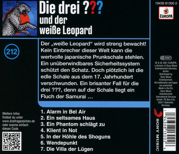 Bemerkungen / Titelliste: MP3 Audio jetzt kostenlos anhören 01. "212 - und der weiße Leopard - 1. Alarm in Bel Air"