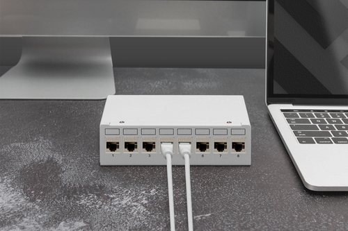 Patch Panel - modular - geeignet für Wandmontage, Tisch - abgeschirmt - RJ-45 X 8 - Hellgrau, RAL 7035 - 1U - 25.4 cm (10)