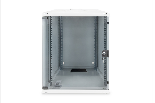 Beschreibung:Beschreibung Die DIGITUS® Compact-Serie ist eine Reihe von 48,30cm (19") Wandgehäusen die speziell entwickelt wurden, um sowohl eine optimale Verkabelung als auch den Einbau von diversen Zubehörkomponenten zu gewährleisten. Die Wandgehäuse sind sehr platzsparend und ideal für die Verwendung von unzähligen Produkten aus dem 48,30cm (19") Bereich geeignet. Des Weiteren sind sie speziell gebaut um den hohen Anforderungen im Netzwerkbereich gerecht zu werden und bieten eine Vielzahl von Eigenschaften wie die leicht zu öffnende Fronttür, sowie individuell einstellbare Profilschienen. Der Zugang an der Ober- und Unterseite jeden Gehäuses, machen die Installation der Verkabelung sehr einfach, flexibel und zeitsparend. DIGITUS® bietet eine komplette Auswahl an Zubehörkomponenten um die Installation der Wandgehäuse mit professionellen Produkten zu gewährleisten. Die Auslieferung erfolgt unmontiert im "Flat-Pack Design", dies ermöglicht einen kostengünstigen Transport. Features 1,5mm robustes Stahlblech