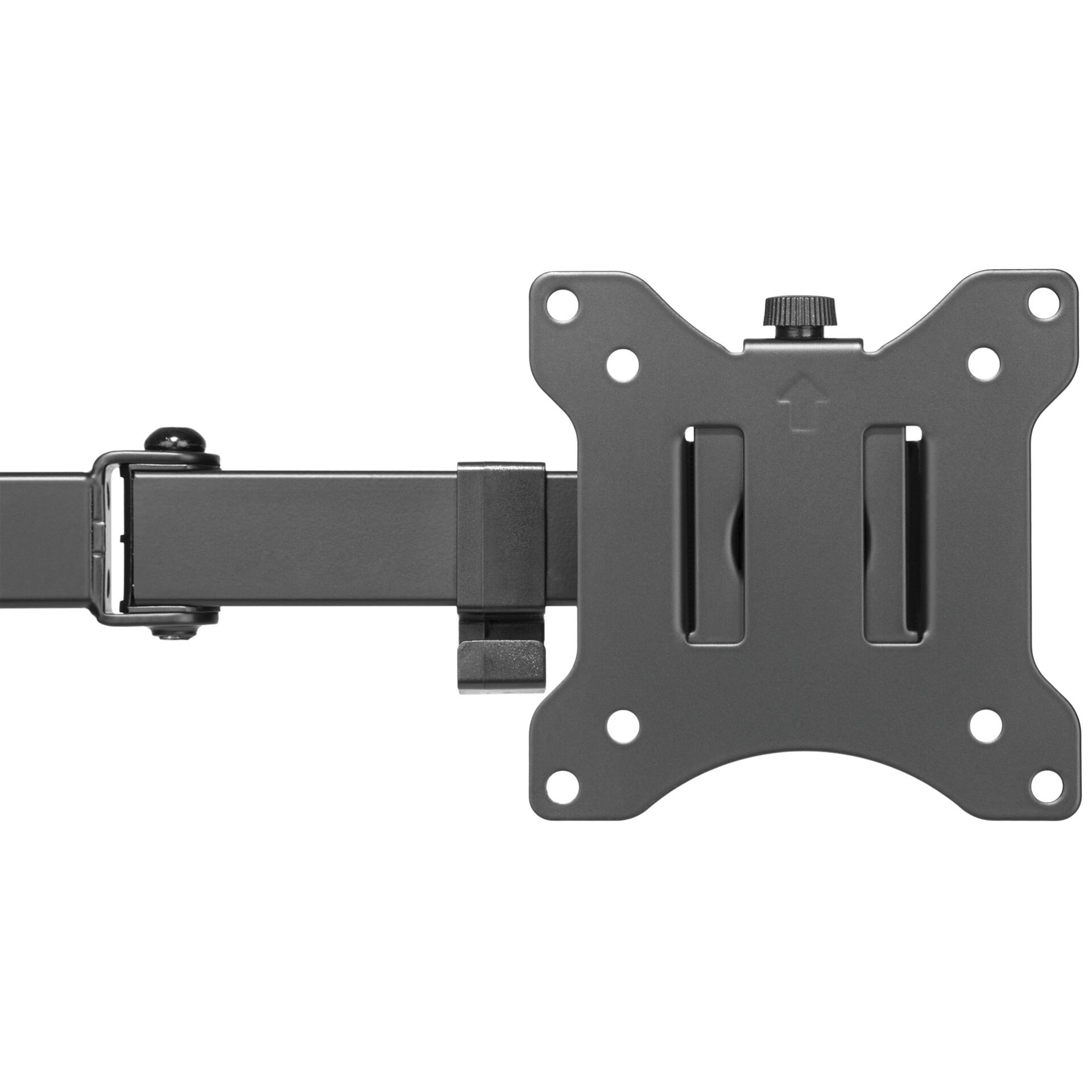 | Beschreibung: | Mit der universellen Monitorhalterung von DIGITUS® können Sie einen Monitor der Größen 15" - 32" bequem per Klemmhalterung am Schreibtisch befestigen. Die Quick-Release-Funktion erleichtert Ihnen zudem die Installation des Monitors. Die VESA-Halterung wird ganz einfach in die entsprechende Aufnahme geschoben und mit einer Schraube fixiert. Ohne großen Aufwand richten Sie den Monitor nach Ihren Bedürfnissen aus und können diesen schwenken, neigen oder den Monitor selbst drehen z. B. für Hochformat-Monitor schwarzKlemmvorrichtung1 Stück8 kgMonitorKurzinfo: DIGITUS DA-90399 - Tischhalterung für Monitor / Curved-Monitor - Stahl - mattschwarz - Bildschirmgröße: 38.1-81.3 cm (15"-32") Gruppe AV-Möbel Hersteller DIGITUS Hersteller Art. Nr. DA-90399 Modell DA-90399 EAN/UPC 4016032465164 Produktbeschreibung: DIGITUS DA-90399 - Tischhalterung Produkttyp Tischhalterung Abmessungen (Breite x Tiefe x Höhe) 51.7 cm 49.8 cm Einstellbare Tiefe 1-8.5 cm Rotation 360° Drehen 270° Anpassungen Höhe, schwenken, Drehung, Tiefe Gewicht 2.5 kg Empfohlene Verwendung Monitor / Curved-Monitor Empfohlene Display-Größe 38.1-81.3 cm (15"-32") VESA-Halterung 100 x 100 mm, 75 x 75 mm Max. Ladegewicht 8 kg Material Stahl Farbe Mattschwarz Ausführliche Details Allgemein Breite 51.7 cm Höhe 49.8 cm Einstellbare Tiefe 1-8.5 cm Gewicht 2.5 kg Material Stahl Farbe Mattschwarz Möbel für audiovisuelle Geräte Typ Tischhalterung Montagekomponenten Gelenkarm, Stange mit Klemmstück, VESA-Halterung Empfohlene Verwendung Monitor / Curved-Monitor VESA-Halterung 100 x 100 mm, |  | | Herstellernummer: |