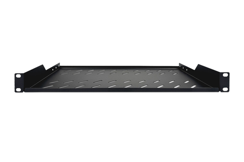 Die Festmontage-Regale lassen sich einfach in die vorderen 483 mm (19 Zoll) Profilschienen Ihres 483 mm (19 Zoll) großen Netzwerk- oder Serverschranks einbauen. Dank des stabilen Lochblechs mit hoher Tragfähigkeit sind sie optimale Halterungen für Komponenten, die nicht in 483 mm (19 Zoll) passen.