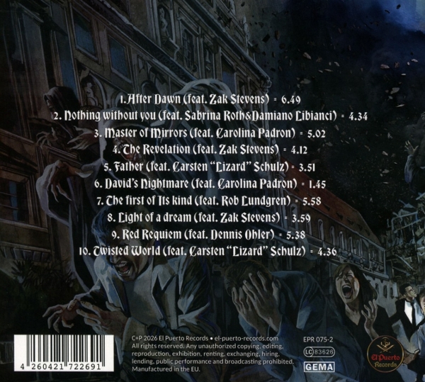 El Puerto Records ist ein unabhängiges Label aus Deutschland, das sich einen Namen gemacht hat, indem es Rock- und Metal-Künstler mit Profil und klarer künstlerischer Vision unterstützt. Das vielseitige Programm reicht von traditionellem und melodischem Metal bis hin zu härteren, moderneren Spielarten - stets mit dem Fokus auf Authentizität, starken Songs und nachhaltigem Aufbau der Künstler. Mit Veröffentlichungen wie "Redemption Part I - Twisted World" unterstreicht El Puerto Records seinen Anspruch, hochwertige Produktionen zu liefern und sowohl etablierten Acts als auch vielversprechenden Newcomern eine Plattform in der internationalen Rock- und Metal-Community zu bieten. |  | | Herstellernummer: |