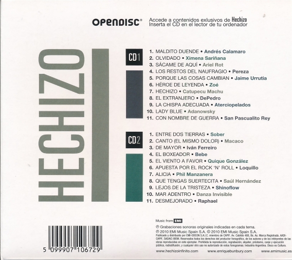 1-1: Maldito Duende () 1-2: Olvidado () 1-3: Sßcame De Aquí () 1-4: Los Restos Del Naufragio () 1-5: Porque Las Cosas Cambian () 1-6: Héroe De Leyenda () 1-7: Hechizo () 1-8: El Extranjero () 1-9: La Chispa Adecuada () 1-10: Lady Blue () 1-11: Con Nombre De Guerra () 2-1: Entre Dos Tierras () 2-2: Canto (El Mismo Dolor) () 2-3: De Mayor () 2-4: El Boxeador () 2-5: El Viento A Favor () 2-6: Apuesta Por El Rock 'n' Roll () 2-7: Alicia () 2-8: Que Tengas Suertecita () 2-9: Lejos De La Tristeza () 2-10: Mar Adentro () 2-11: Desmejorado ()