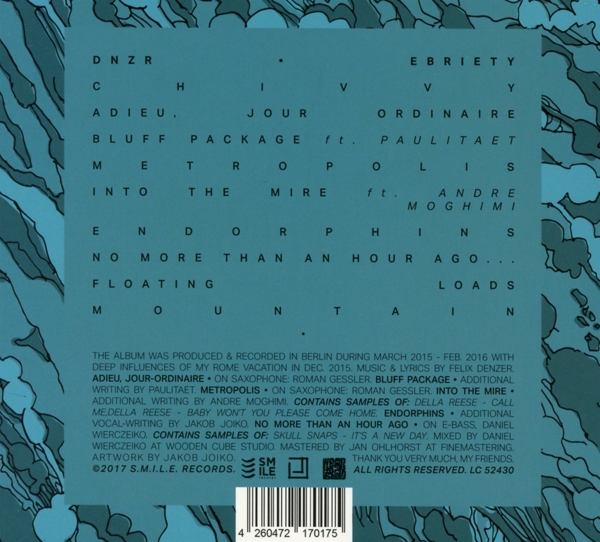 01. DNZR "Chivvy" 02. DNZR "Adieu, jour ordinaire" 03. DNZR / Paulitaet "Bluff package" 04. DNZR "Metropolis" 05. DNZR / Moghimi, Andre "Into the mire" 06. DNZR "Endorphins" 07. DNZR "No more than an hour ago..." 08. DNZR "Floating loads" 09. DNZR "Mountain"