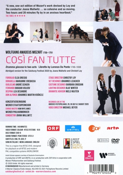 01. (keine Angaben) "Vorspann" Cos fan tutte KV 588 (Oper in 2 Akten) (Gesamtaufnahme) 02. Volkov, Bogdan "Ouvertüre" 03. Volkov, Bogdan "La mia Dorabella (1. Akt)" 04. Volkov, Bogdan "Fuor la spada!" 05. Volkov, Bogdan "Qual prova avete voi" 06. Volkov, Bogdan "Una bella serenata" 07. Volkov, Bogdan "Ah guarda, sorella" 08. Volkov, Bogdan "Ma che diavol vuol dir..." 09. Volkov, Bogdan "Non son essi" 10. Volkov, Bogdan "Vorrei dir, e cor non ho" 11. Volkov, Bogdan "Stelle! Per carit?, signor Alfonso" 12. Volkov, Bogdan "Sento, oddio, che questo piede" 13. Volkov, Bogdan "Oh cielo! Questo ? il tamburo funesto..." 14. Volkov, Bogdan "Non v'? pi? tempo, amici" 15. Volkov, Bogdan "Di scrivermi ogni giorno" 16. Volkov, Bogdan "Bella vita militar!" 17. Volkov, Bogdan "Dove son? - Son partiti" 18. Volkov, Bogdan "Soave sia il vento" 19. Volkov, Bogdan "Che vita maledetta" 20. Volkov, Bogdan "Madame, ecco la vostra colazione" 21. Volkov, Bogdan "Smanie implacabili" 22. Volkov, Bogdan "Che silenzio!" 23. Volkov, Bogdan "Alla bella Despinetta" 24. Volkov, Bogdan "Che sussurro! Che strepito!" 25. Volkov, Bogdan "Come scoglio immoto resta" 26. Volkov, Bogdan "Ah non partite!" 27. Volkov, Bogdan "Non siate ritrosi, occhietti vezzosi" 28. Volkov, Bogdan "E voi ridete?" 29. Volkov, Bogdan "Si pu? sapere un poco" 30. Volkov, Bogdan "Un'aura amorosa" 31. Volkov, Bogdan "Amor, cos'??" 32. Volkov, Bogdan "Ah, che tutta in un momento" 33. Volkov, Bogdan "Si mora, s, si mora" 34. Volkov, Bogdan "Eccovi il medico" 35. Volkov, Bogdan "Dove son? che loco ? questo?" 36. Volkov, Bogdan "Dammi un bacio, o mio tesoro" 37. Volkov, Bogdan "Andate l?, che siete due bizzarre ragazze! (2. Akt)" 38. Volkov, Bogdan "Una donna a quindici anni" 39. Volkov, Bogdan "Sorella, cosa dici?" 40. Volkov, Bogdan "Prender? quel brunettino" 41. Volkov, Bogdan "Secondate, aurette amiche" 42. Volkov, Bogdan "Oh, che bella giornata!" 43. Volkov, Bogdan "Il core vi dono" 44. Volkov, Bogdan "Barbara, perch? fuggi?" 45. Volkov, Bogdan "Ei parte... Senti..." 46. Volkov, Bogdan "Per piet?, ben mio, perdona" 47. Volkov, Bogdan "Amico, abbiamo vinto!" 48. Volkov, Bogdan "Bravo: questa ? costanza" 49. Volkov, Bogdan "Ora vedo che siete una donna di garbo" 50. Volkov, Bogdan "E amore un ladroncello" 51. Volkov, Bogdan "Come tutto congiura" 52. Volkov, Bogdan "L'abito di Ferrando" 53. Volkov, Bogdan "Fra gli amplessi in pochi istanti" 54. Volkov, Bogdan "Oh poverreto me!" 55. Volkov, Bogdan "Tutti accusan le donne" 56. Volkov, Bogdan "Vittoria, padroncini!" 57. Volkov, Bogdan "La pi? bella commediola non s'? vista o si vedr?." 58. Volkov, Bogdan "Benedetti i doppi coniugi" 59. Volkov, Bogdan "Miei signori, tutto ? fatto" 60. Volkov, Bogdan "Richiamati da regio contrordine" 61. Volkov, Bogdan "No, signor, non ? un notaio" 62. Volkov, Bogdan "Giusto ciel! Voi qui scriveste" 63. Volkov, Bogdan "Fortunato l'uom che prende" 64. (keine Angaben) "Abspann"