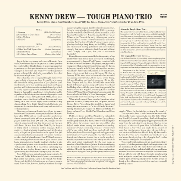 Beschreibung:Bass: Paul Chambers (3), Cover [Cover Design]: Fran Scott, Drums: "Philly" Joe Jones, Engineer: Jack Higgins, Liner Notes: Orrin Keepnews, Photography By: Roy DeCarava, Piano: Kenny Drew, Producer: Bill Grauer, Producer: Orrin Keepnews, Typography: Paul Bacon (2), Composed By: Duke Ellington, Composed By: Juan Tizol, Lyrics By: Irving Mills, Composed By: Harold Arlen, Lyrics By: Johnny Mercer, Composed By: Thelonious Monk, Composed By: Kenny Drew, Compiled By: Vernon Duke, Composed By: Ned Washington, Lyrics By: Leigh Harline, Composed By: Kenny Drew, Composed By: Harold Arlen, Labelcode JW 074 (JW-074, JW074)