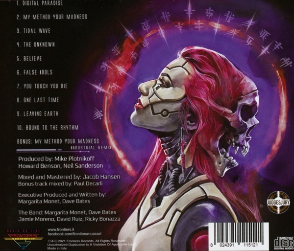 Beschreibung:Artwork [Back Cover]: Timo Wuerz, Artwork [Cover Art]: Alex Ruiz, Bass: Ricky Bonazza, Drums: Jamie Moreno, Edited By: Paul DeCarli, Executive-Producer: David Bates (11), Executive-Producer: Margarita Monet, Guitar: David Bates (11), Mixed By, Mastered By: Jacob Hansen, Producer: Howard Benson, Producer: Mike Plotnikoff, Producer: Neil Sanderson (4), Recorded By: Mike Plotnikoff, Vocals, Keyboards: Margarita Monet, Written-By: David Bates (11), Written-By: Margarita Monet, Labelcode FTTR1151.2 (FR CD 1151), Phonographic Copyright (p) Frontiers Records, Copyright (c) Frontiers Records, Published By Frontiers Records, Oyez!