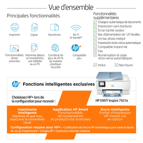 | Packungsinhalt | HP ENVY Inspire 7921e All-in-One-Drucker; HP 303 Schwarz Setup Druckerpatrone (mit HP Instant Ink kompatibel); HP 303 Cyan/Magenta/Gelb Setup Druckerpatrone (mit HP Instant Ink kompatibel); Flyer mit Hinweisen zur Tinte; Flyer mit regulatorischen Angaben; Installationsanleitung; Referenzhandbuch; Netzkabel, HP Advanced Hochglanz- und Matt-Fotopapier enthalten; [Informationen zu Tintenvolumen und Seitenreichweite finden Sie unter http://hp.com/go/learnaboutsupplies] |